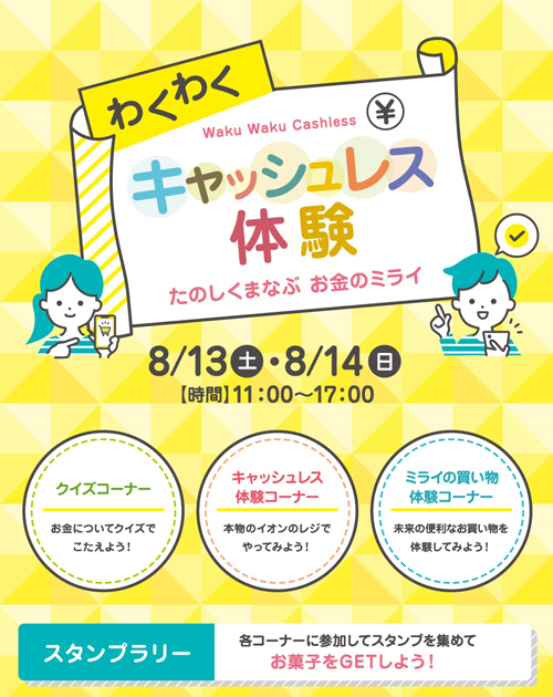 当社は、主催 公益財団法人イオンワンパーセントクラブ(所在地:千葉市美浜区、理事長 森 美樹)、協力 イオンクレジットサービス株式会社(本社:東京都千代田区、代表取締役社長 藤田 健二)が実施した「わくわくキャッシュレス体験」イベント(開催日:2022年8月13日~14日、会場:イオンモール幕張新都心)におきまして、「デジタルスタンプラリー」、「近未来買い物体験コーナー」および、「AIによる骨格解析デモンストレーションコーナー」への体験システムの提供にて協力いたしました。詳しくは以下のニュースリリースやfacebookページをご参照ください。