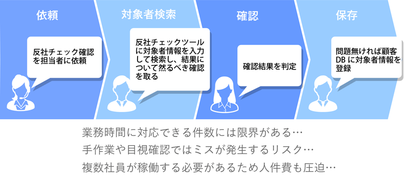 新たに登録した派遣社員の方の日次本人確認や年に一度行われる既存取引先の一括チェックに「Risk Analyze」が利用されています。